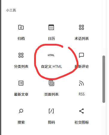 5.往下翻有一些小工具,选自定义HTML,把这个自定义HTML放进组里